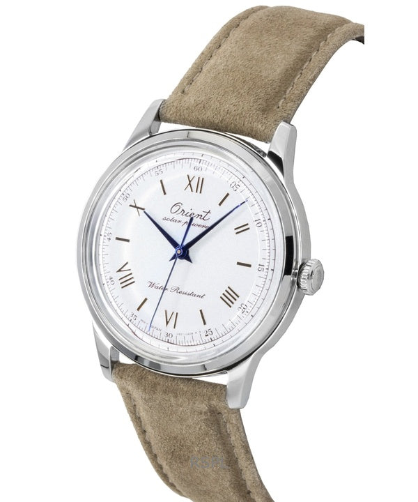 Orient Bambino 75-vuotisjuhlamallin rajoitetun erän valkoinen kellotaulu aurinkokennolla varustettu RA-WK0006S miesten kello lisärannekkeella