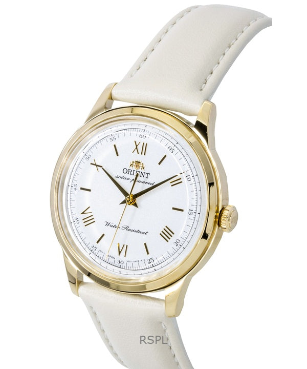 Orient Bambino RA-WK0001S -nahkaranneke, valkoinen kellotaulu, aurinkokennon ranneke, miesten kello