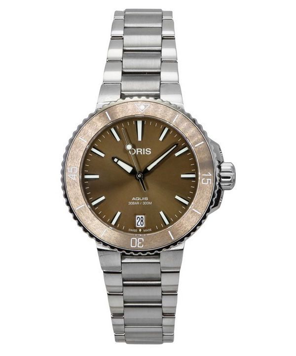 Oris Aquis Date ruostumaton teräs ruskea kellotaulu automaattinen 01 733 7731 4156-07 8 18 05P 300M Unisex kello