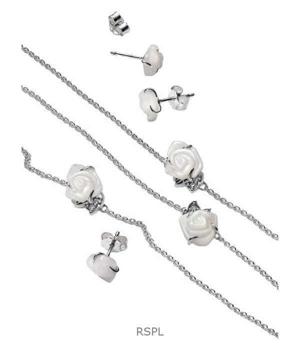 Pandora White Rose In Bloom -nappikorvakoru valkoisella bioresiinillä P-293209C01 naisille