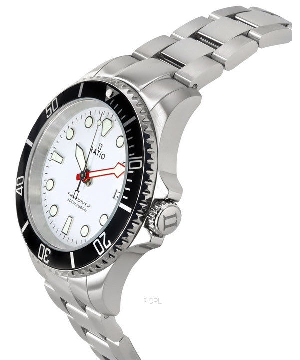 Ratio FreeDiver Sapphire ruostumaton teräs valkoinen kellotaulu kvartsi RTF037 200M miesten kello