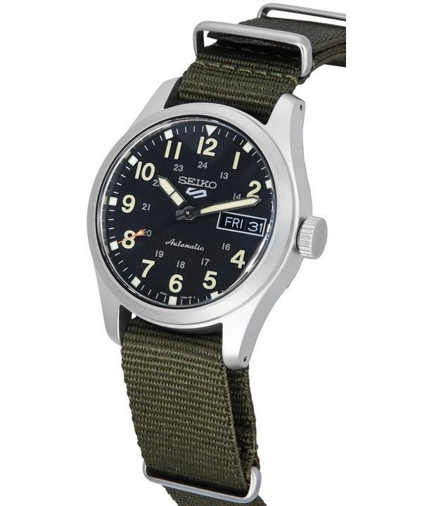 Seiko 5 Sports Green Zone keskikentän musta kellotaulu automaattinen SRPJ85K1 100M miesten kello