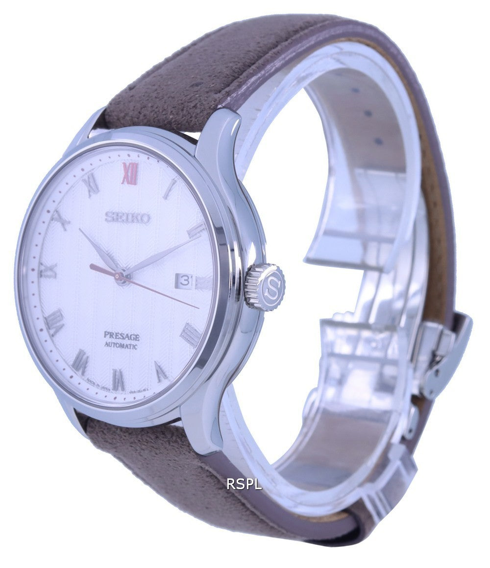 Seiko Presage Zen Garden valkoinen kellotaulu nahkahihna automaattinen SRPG25 SRPG25J1 SRPG25J miesten kello