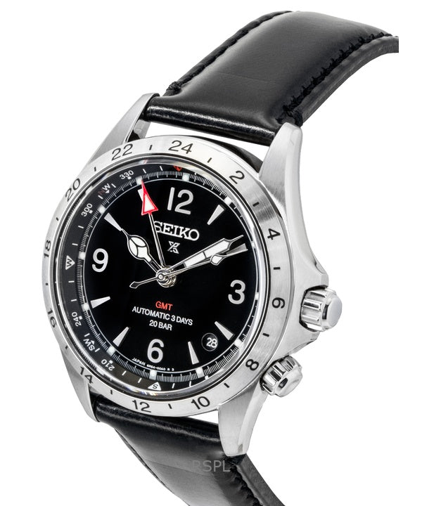 Seiko Prospex Alpinist GMT nahkaranneke mustalla kellotaululla automaattinen SPB379J1 200M miesten kello