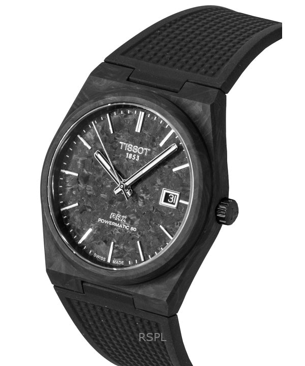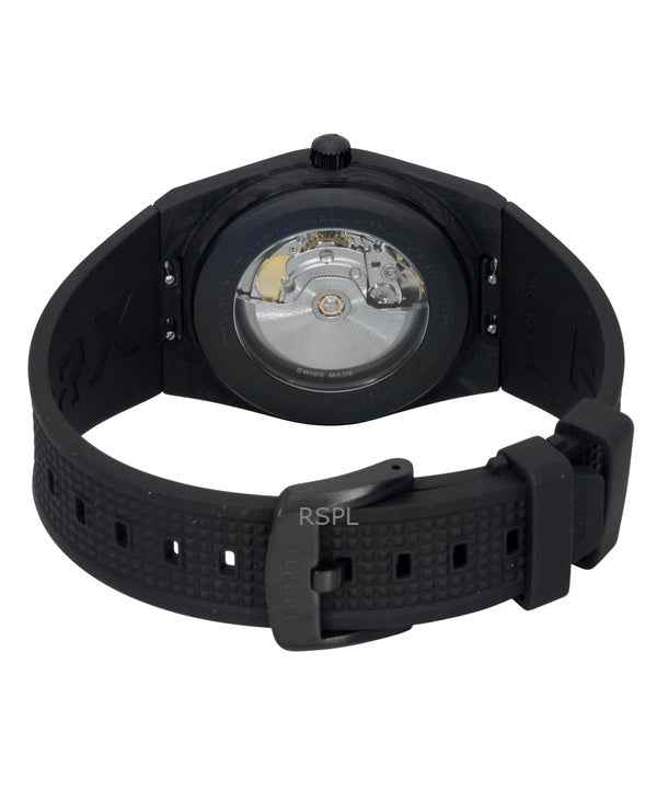 Tissot PRX Carbon synteettisellä rannekkeella, mustalla kellotaululla, automaattinen T137.907.97.201.00 100M miesten kello