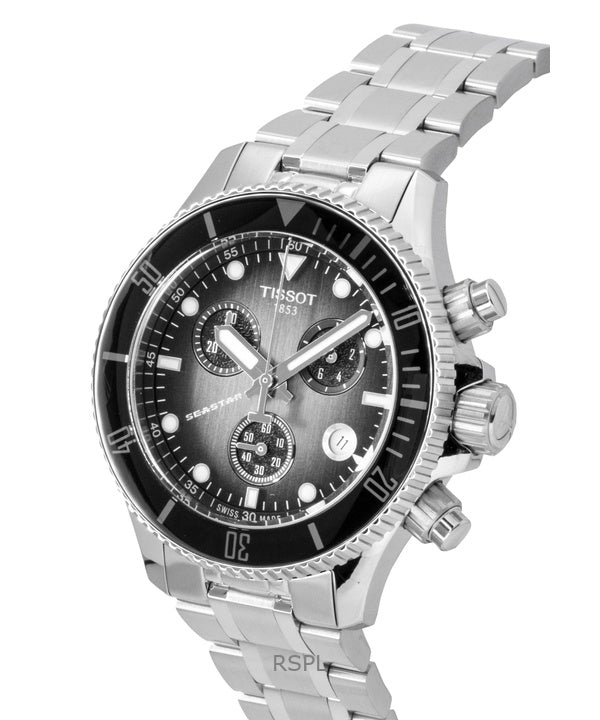 Tissot Seastar 1000 Chronograph ruostumattomasta teräksestä valmistettu musta kellotaulu kvartsi sukeltajan T120.217.11.061.00 300M miesten kello