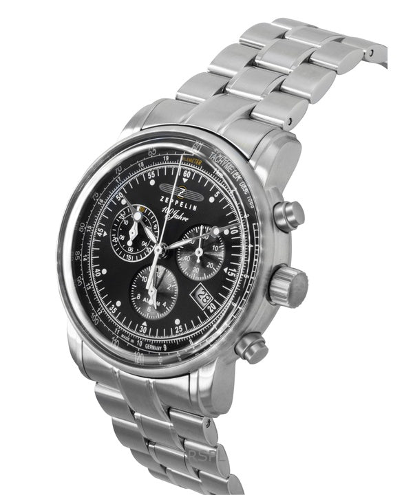 Zeppelin 100 Jahre Chronograph ruostumaton teräs musta kellotaulu kvartsi 7680 MB2 miesten kello