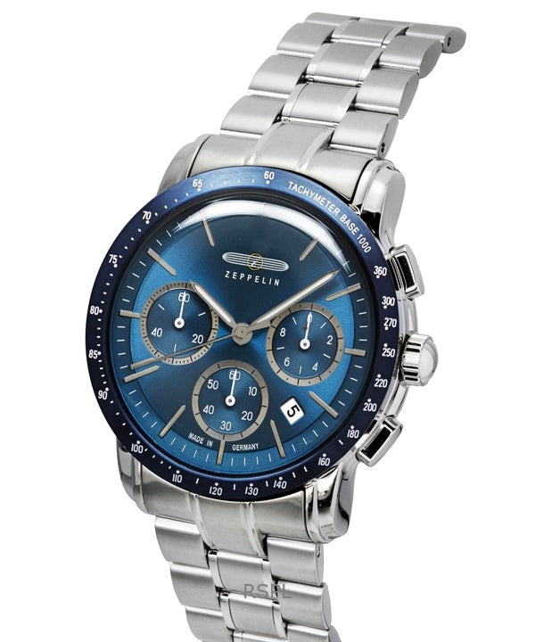 Zeppelin New York Chronograph ruostumattomasta teräksestä valmistettu sininen kellotaulu kvartsi 8878MB3 miesten kello